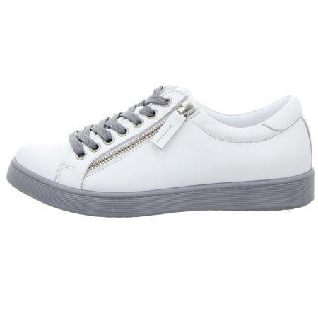 Sportiv beim Komfort aber klassisch im Look zeigt sich der sportliche Schnürschuh von Andrea Conti in Weiß für Damen. Das hochwertige Glattleder wurde mit einem komfortablen Reißverschluss versehen. Die sportliche Sohle ist leicht und flexibel. Das Wechselfußbett aus Leder garantiert einen optimalen Sitz des Schuhs. Ob zum legeren Büro Outfit oder als eleganter Freizeitschuh, mit diesem Andrea Conti Schnürer tragen Damen einen hochwertigen Allrounder.