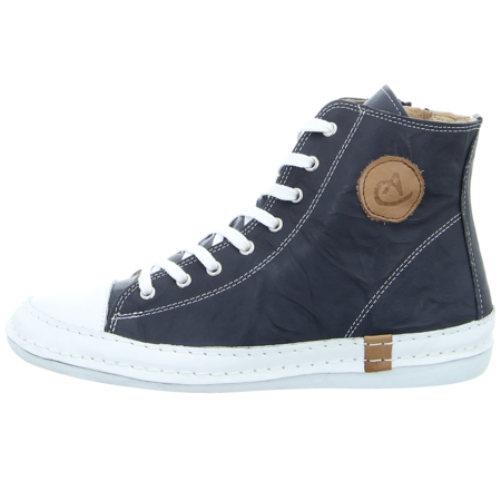 Eine Prise Sportlichkeit kombiniert mit einem Hauch Eleganz ergibt dieser tolle blaue Sneaker High von Andrea Conti. Das butterweiche Glattleder wird ohne viel Schnickschnack in einem cleanen Style designt. Doch nicht nur stilvoll, sondern auch durchaus bequem gehen Sie mit diesem modischen Sneaker High, die an Komfort nicht geizt! Ein tolles Tragegefühl verspricht die bequeme Decksohle, die bei Bedarf ausgewechselt werden kann. Dank einer gummierten Laufsohle ist der Sneaker nicht nur für den Stadtspaziergang geeignet, sondern auch im Büro ein schicker Begleiter.
