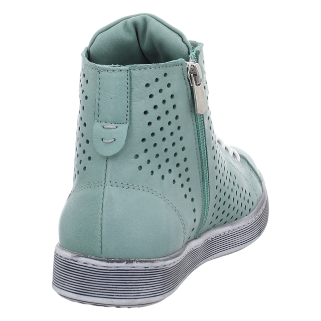 Sportiv beim Komfort aber klassisch im Look zeigt sich der luftige Sneaker High von Andrea Conti in Grün für Damen. Das hochwertige Glattleder ist komplett perforiert und somit ist auch an heißen Tagen für ein angenehmes Fußklima gesorgt. Die sportliche Sohle ist leicht und flexibel. Das Wechselfußbett aus Leder garantiert einen optimalen Sitz des Schuhs. Ob zum legeren Büro Outfit oder als eleganter Freizeitschuh, mit diesem Andrea Conti Sneaker tragen Damen einen hochwertigen Allrounder.