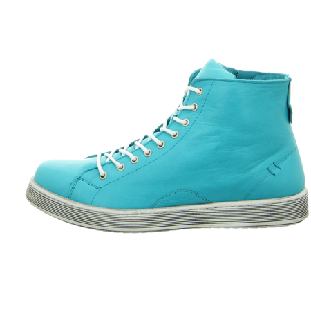 Eine Prise Sportlichkeit kombiniert mit einem Hauch Eleganz ergibt dieser tolle türkise Sneaker High von Andrea Conti. Farblich abgestimmte Ziernähte schmücken das butterweiche Glattleder, das ohne viel Schnickschnack in einem cleanen Look designt wurde. Doch nicht nur stilvoll, sondern auch durchaus bequem gehen Sie mit diesem modischen Sneaker High, die an Komfort nicht geizt! Ein Reißverschluss an der Innenseite erleichtert den Einstieg.