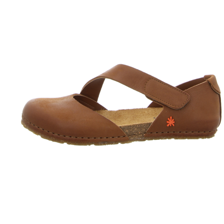 Mit dieser braunen Riemchensandale Creta für Damen zeigen die Designer von Art eine tolle Kombination aus Ballerina und Sandale. Das Ergebnis ist ein fetziger Sommerschuh. Gefertigt aus hochwertigem Glattleder, zeigt sich Creta nicht nur optisch auf Top-Niveau - die Sandale bietet auch höchsten Tragekomfort. Das diagonal verlaufende Riemchen kann dank des versteckten Klettverschlusses optimal an Ihre Fußform angepasst werden. Mit viel Komfort punktet die luftige Riemchensandale Creta, die auf keinen Fall in Ihrem Schuhschrank fehlen sollte!