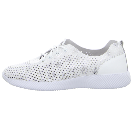 Weißer sportlicher Damen Schnürschuh im luftigen Design von Artiker der jeden Schritt zum stylischen Erlebnis werden lässt.