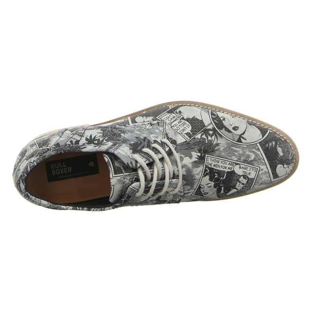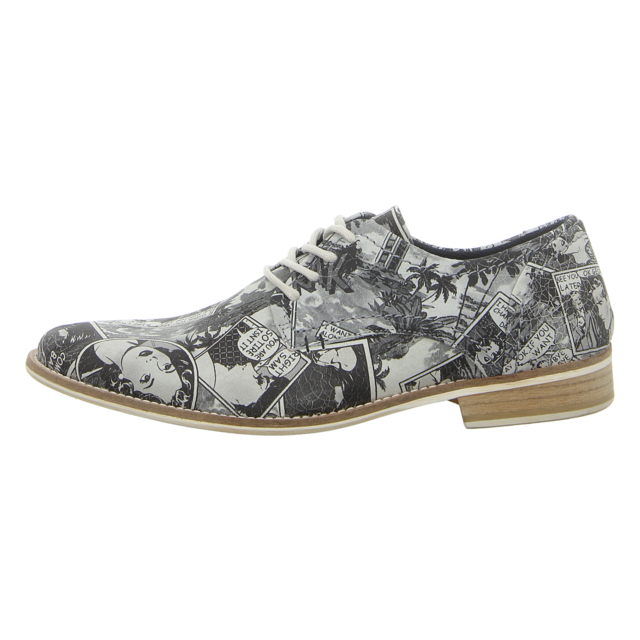 Mit diesem klassischen Schnürschuh von Bullboxer ziehen Herren garantiert neidische Blicke auf sich! Denn der schicke Schuh kommt im angesagten Vintage Look mit Comic Print. Sein Rauleder ist so bearbeitet, dass es wie ein vintage Foto wirkt. Klar, dass der freche Hingucker auch beim Komfort punktet. Weiße Schnürsenkel versprechen eine optimale Anpassung an Ihre Passform. Der Blockabsatz dämpft Ihre Schritte und sorgt für ein gehobenes Auftreten. Seine Sohle aus Lederimitat und das Schuhinnere aus Textil unterstreichen den gemütlichen Charakter. Lassen Sie sich diesen extravaganten Schnürschuh von Bullboxer nicht entgehen!