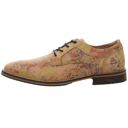 Für Herren, die gerne pfiffige und ausgefallene Schuhe tragen, ist der beige klassische Schnürschuh von Bullboxer eindeutig ein Must Have! Sein feines und geschmeidiges Rauleder wurde mit floralen Mustern im angesagten Used Look ausgeschmückt, die jedem eleganten Outfit das gewisse Etwas verleihen. Die softe Innensohle und der kleine Blockabsatz sorgen für ein angenehmes Auftreten. Dank der Schnürsenkel ist eine gute Passform garantiert. Stylische und modebewusste Männer sollten sich diesen schicken Schnürschuh von Bullboxer auf keinen Fall entgehen lassen!