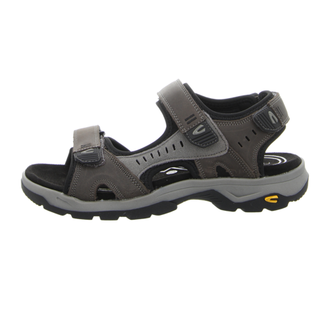 Diese graue Herren Sandale von camel active überzeugt durch seine praktischen Features. Drei Klettverschlüsse im Zehen-, Spann- und Fersenbereich garantieren eine optimale Passform für jede Fußform. Das weiche Fußbett sorgt für leichtes und fußgerechtes Auftreten, wozu auch der kleine Keilabsatz beiträgt. Dank der profilierten Laufsohle ist die Sandale auch als ein Trekkingschuh tragbar. Mit der grauen Herren Sandale von camel active Sind Sie immer sicher und gemütlich unterwegs!