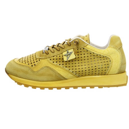 Sportlich und trotzdem stylisch sind Herren mit diesem gelben Sneaker von Cetti unterwegs. Ziernähte und eine dekorative Labelapplikation lockern das sportliche Design auf. Durch die großzügigen Perforationen ist für Luftzirkulation und ein gutes Fußklima gesorgt. Mit der Gummischnürung ist eine optimale Passform gewährleistet. Das Wechselfußbett kann bei Bedarf gegen eigene Sohlen und Einlagen getauscht werden. Mit der gut profilierten Laufsohle haben Sie auch auf schwierigen Untergründen immer einen guten Halt. Modische Herren werden von dem luftigen Sneaker begeistert sein.
