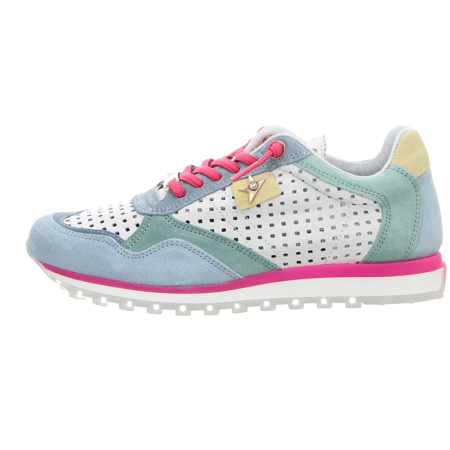 Sportlich und trotzdem stylisch sind Damen mit diesem bunten Sneaker von Cetti unterwegs. Ziernähte und die Farbakzente lockern das sportliche Design auf. Durch die großzügigen Perforationen ist für Luftzirkulation und ein gutes Fußklima gesorgt. Mit der Gummischnürung ist eine optimale Passform gewährleistet. Das Wechselfußbett kann bei Bedarf gegen eigene Sohlen und Einlagen getauscht werden. Mit der gut profilierten Laufsohle haben Sie auch auf schwierigen Untergründen immer einen guten Halt. Modische Damen werden von dem luftigen Sneaker begeistert sein.