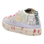 Ein weiteres Highlight sind die kontrastreichen Schnürsenkel in Weiß und Pink, die dem Sneaker eine frische, dynamische Note verleihen. Die markante Mittelsohle mit dekorativem "Paint-Drip-Effekt greift das kreative Designkonzept auf und sorgt für einen modernen, fast handbemalten Look.