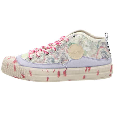 Der duuo Col Cover Marble 800 ist ein auffälliger Sneaker, der kreatives Design mit urbanem Streetstyle verbindet. Das Obermaterial überzeugt mit einer besonderen, marmorierten Struktur in zarten Pastelltönen, die dem Schuh eine außergewöhnliche und künstlerische Optik verleiht. Dezente Overlays in hellen Farben sowie das runde duuo-Logo-Patch an der Seite setzen stilvolle Akzente und unterstreichen den individuellen Charakter des Modells.