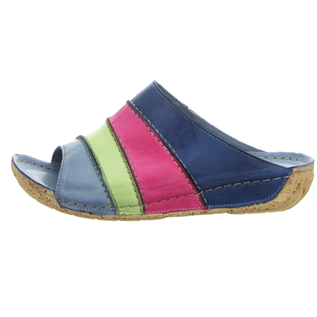 Wenn Sie auch zu den Damen gehören, denen es nicht bunt genug sein kann, dann ist diese bunte Pantolette von Gemini genau Ihr Schuh! Die Pantolette erstrahlt in bunten Farben und wird so zum farbenfrohen und freundlichen Sommerschuh. Das geringe Gewicht und der Keilabsatz sowie das softe Leder versprechen hohen Tragekomfort. Kombinieren Sie die Gemini Pantolette zum coolen Strickkleid oder tragen Sie sie zu Shorts im Sommerurlaub. Fröhlich, freundlich, frech - so ist diese Pantolette von Gemini!