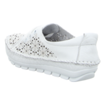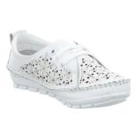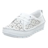 Der weiße Schnürschuh von Gemini ist ein trendiger und gemütlicher Damenschuh für die warme Jahreszeit. Urlaubsfeeling wecken die derbe Ziernaht am Sohlenrand sowie die großen Cut Outs. Die lockere Passform sowie die weiche lederne Innensohle garantieren stundenlanges und ermüdungsfreies Laufen. Die extrem flexible Laufsohle macht das Tragen nur noch angenehmer! Mit dem weißen Schnürer von Gemini haben Damen einen eleganten und äußerst gemütlichen Schuh zu allen legeren Outfits.