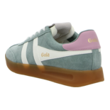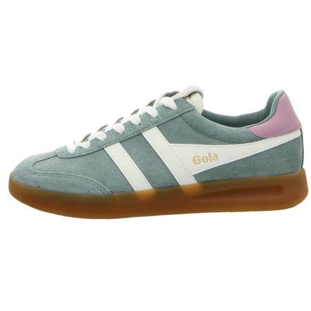 Diese Sneaker in Grün sind mit den charakteristischen Gola-Streifen an den Seiten versehen, die ihnen einen unverwechselbaren Look verleihen. Die auffälligen, farbigen Streifen ziehen sofort die Blicke auf sich und verleihen dem Schuh einen besonderen Touch. Um zusätzliche Robustheit zu gewährleisten, sind die Zehenbereiche mit Rauleder verstärkt.