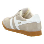 Diese Sneaker in Grau sind mit den charakteristischen Gola-Streifen an den Seiten versehen, die ihnen einen unverwechselbaren Look verleihen. Die auffälligen, farbigen Streifen ziehen sofort die Blicke auf sich und verleihen dem Schuh einen besonderen Touch. Um zusätzliche Robustheit zu gewährleisten, sind die Zehenbereiche mit Rauleder verstärkt.