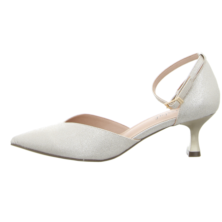 Grazil und verspielt ist Mima 03, der Pumps aus Lederimitat in einer tollen silbernen Farbkombination von Laura Vita für Damen. Softe Riemchen und die praktische Schnalle sorgen für ein angenehmes Tragegefühl und einen tollen Sitz. Tragen Sie den Pumps zum farbenfrohen Sommerkleid oder als schicken Begleiter im Büro. In jedem Fall wird Sie Mima 03 von Laura Vita vom ersten Schritt an begeistern.