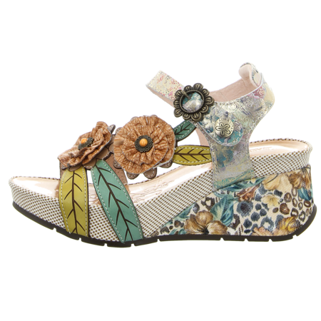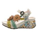 Verspielt und voller Lebensfreude ist die Keilsandalette Barry 41 aus Glattleder von Laura Vita. Wundervolle Ornamente zieren die zarten Riemchen der Sandalette. Das softe Fußbett sorgt für ein angenehmes Tragegefühl. Mit dem Klettverschluss ist ein optimaler Halt des Schuhs garantiert. Kombiniert zum farbenfrohen Sommerkleid werden Sie die warme Jahreszeit in der Keilsandalette von Laura Vita noch ein bisschen mehr genießen können.