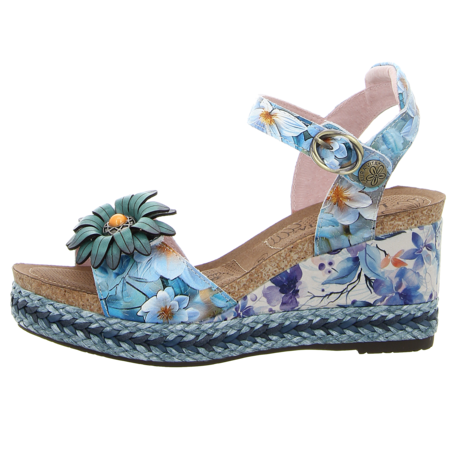 Verspielt und voller Lebensfreude ist die Keilsandalette Facyo 75 aus Glattleder von Laura Vita. Wundervolle Ornamente zieren die zarten Riemchen der Sandalette. Das softe Fußbett sorgt für ein angenehmes Tragegefühl. Mit dem Klettverschluss ist ein Optimaler Halt des Schuhs garantiert. Kombiniert zum farbenfrohen Sommerkleid werden Sie die warme Jahreszeit in der Keilsandalette von Laura Vita noch ein bisschen mehr genießen können.