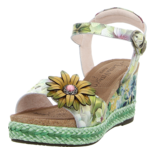 Verspielt und voller Lebensfreude ist die Keilsandalette Facyo 75 aus Glattleder von Laura Vita. Wundervolle Ornamente zieren die zarten Riemchen der Sandalette. Das softe Fußbett sorgt für ein angenehmes Tragegefühl. Mit dem Klettverschluss ist ein Optimaler Halt des Schuhs garantiert. Kombiniert zum farbenfrohen Sommerkleid werden Sie die warme Jahreszeit in der Keilsandalette von Laura Vita noch ein bisschen mehr genießen können.