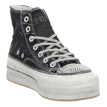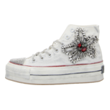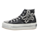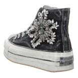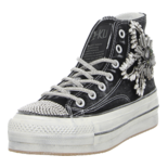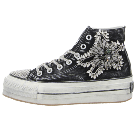 Dieser verspielte Sneaker High in Schwarz verkörpert perfekt die Vereinigung von Eleganz, Komfort und lässiger Coolness, die NAN-KU auszeichnet. Mit seinen funkelnden Glitzerelementen und der dynamischen Silhouette fungiert dieser Sneaker als auffälliges Fashion-Statement. Die hohe Plateausohle im angesagten Used-Look gewährleistet zudem höchsten Laufkomfort. Verpassen Sie keinesfalls die Gelegenheit, diesen beeindruckenden und trendigen Sneaker von NAN-KU zu ergattern! Seien Sie bereit, Stil und Bequemlichkeit auf eine einzigartig elegante Art zu erleben.
