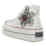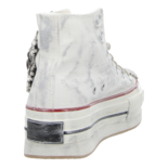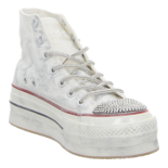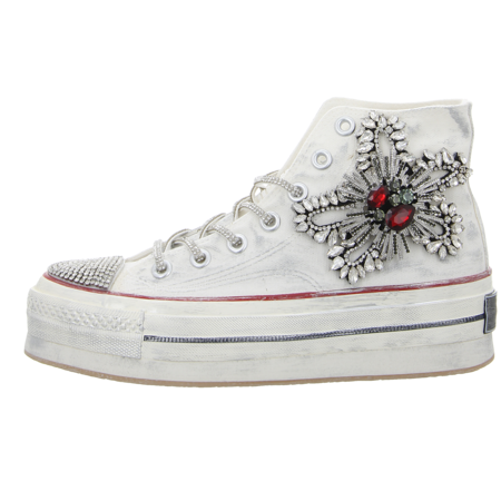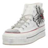 Dieser verspielte Sneaker High in strahlendem Weiß verkörpert perfekt die Vereinigung von Eleganz, Komfort und lässiger Coolness, die NAN-KU auszeichnet. Mit seinen funkelnden Glitzerelementen und der dynamischen Silhouette fungiert dieser Sneaker als auffälliges Fashion-Statement. Die hohe Plateausohle im angesagten Used-Look gewährleistet zudem höchsten Laufkomfort. Verpassen Sie keinesfalls die Gelegenheit, diesen beeindruckenden und trendigen Sneaker von NAN-KU zu ergattern! Seien Sie bereit, Stil und Bequemlichkeit auf eine einzigartig elegante Art zu erleben.