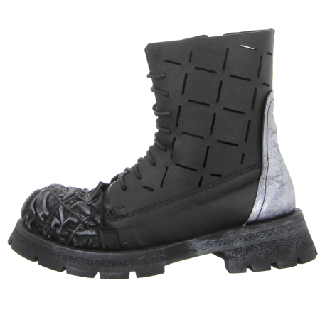 Typisch Papucei besticht auch die schwarze Stiefelette Zenith durch ihr einzigartiges Design. Die robuste, stark profilierte Laufsohle gibt auch auf rutschigen Untergründen Halt. Dank Reißverschluss schlüpfen Sie leicht in die Stiefelette hinein. Das Leder im Schuhinneren schmiegt sich angenehm an den Fuß. Wenn Sie ausgefallene Schuhmode mögen, werden Sie diesen Papucei lieben!