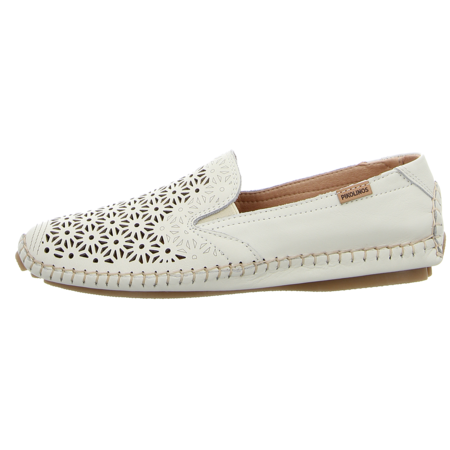 Der weiße Slipper Jerez von Pikolinos ist ein luftiger und gemütlicher Alltagsschuh für Damen. Sein geschmeidiges Glattleder im Obermaterial sitzt angenehm am Fuß und sorgt dank der schicken Lochmusterung für optimale Luftzirkulation. Der kleine innenliegende flache Absatz dämpft Ihre Schritte und macht das Laufen zum Vergnügen. Die lockere Passform und das softe Wechselfußbett tragen zum Tragekomfort wesentlich bei. Mit dem weißen Damenslipper Jerez von Pikolinos laufen Sie entspannt und gemütlich durch die Gegend.