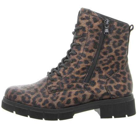 Fashion und Komfort verbindet diese braune Schnürstiefelette im Leopardenlook von Remonte. Durch den Reißverschluss auf der Innenseite zieht sich die Stiefelette ganz einfach an und die Schnürsenkel sorgen für einen sicheren Sitz und eine optimale Schaftweite. Diesen stylischen Remonte Boot sollten Sie sich nicht entgehen lassen!