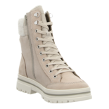 Fabelhaft unterwegs sind Damen in dieser beigen Schnürstiefelette von Remonte. Der Boot ist im dezenten Vintage Look gehalten und passt gleichermaßen zu legeren wie gehobeneren Outfits. Dank leichtem Warmfutter kann er auch an kühlen Tagen getragen werden. Der Reißverschluss an der Innenseite erleichtert das An- und Ausziehen. Der Blockabsatz dämpft Ihre Schritte und sorgt für einen mondänen Auftritt.