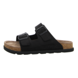 Klassisch im Design und eine Wohltat für Ihre Füße ist diese schwarze Rieker Pantolette für Herren. Die zeitlose Optik passt gerade im Sommer zu vielen Gelegenheiten. Das hochwertige Leder ist langlebig und robust. Das ergonomische Fußbett sorgt für ein angenehmes Gehgefühl. Dank der beiden breiten Riemchen mit Schnalle ist ein optimaler Sitz und eine ideale Passform garantiert. Ob in den eigenen vier Wänden, im Garten oder beim Stadtbummel - diese Pantolette von Rieker wird Herren immer überzeugen.