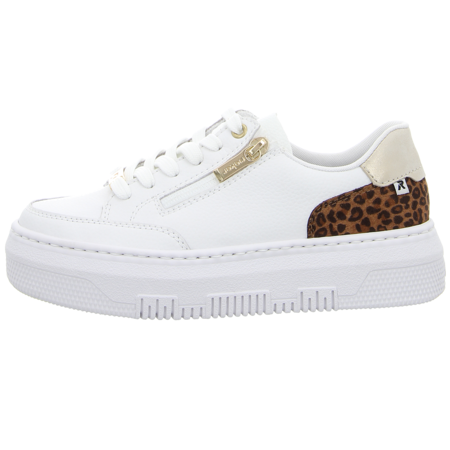 Lässig unterwegs sind Damen in diesem coolen Sneaker Low von Rieker für Damen in Weiß. Die leichte Bauweise und die Plateausohle sind echte Komfortgaranten. Ob zum Jeans Outfit, einem Sommerrock oder als Schuh fürs Büro - dieser Sneaker ist ein echtes Must Have für coole Damen.
