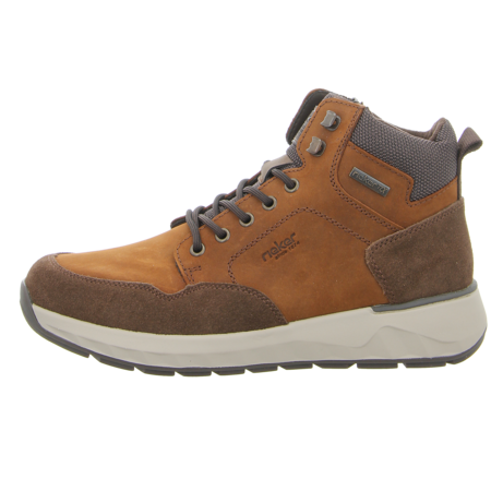 Perfekt für die kalte Jahreszeit in der Stadt ist diese Stiefelette von Rieker in Braun für Herren. Ihr gemütliches Warmfutter schützt Ihre Füße vor der Kälte. Die sportliche Sohle dämpft Ihre Schritte und ist super bequem. Der praktische Reißverschluss verschließt den Schaft. Mit der coolen Schnürung passt er auch perfekt an Ihre Füße. Modische Akzente setzen die coolen Ziernähte und die warme und weiche Schaftumrandung. Holen Sie sich diese gemütliche Winter Stiefelette von Rieker in Ihren Schuhschrank!