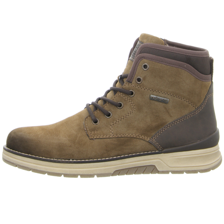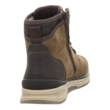 Elegant unterwegs sind Herren in dieser braunen knöchelhohen Stiefeletten von Rieker. Das Lederimitat und die schicken Ziernähte an den Seiten sind echte Hingucker. Dank der Schnürsenkel sitzt der Schuh stets optimal an Ihren Füßen. Die leichte Sohle mit Keilabsatz trägt ebenso zum hohen Tragekomfort bei. Durch das warme Futter sind Ihre Füße immer optimal vor Kälte geschützt. Ob im Büro der der Freizeit, diese Rieker Schnürstiefelette sollte in keinem Schuhschrank fehlen.