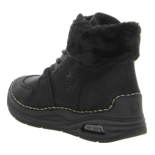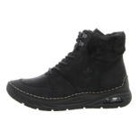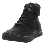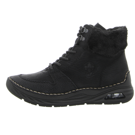 Leicht, schick und bequem ist diese schwarze Stiefelette von Rieker für Damen. Der sportliche Look und der gepolsterte Schaftrand passen zu jedem legeren Outfit. Dank gemütlichem Warmfutter sind Ihre Füße auch an kühlen Tagen bestens aufgehoben. Der leichte Keilabsatz sorgt für ein angenehmes Abrollen. Der Reißverschluss an der Schuhinnenseite garantiert einen einfachen Einstieg. Mit den Schnürsenkeln lässt sich die Schaftweite leicht variieren. Laufen Sie gemütlich durch kühle Tage in dieser sportiven Stiefelette von Rieker für Damen.