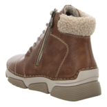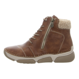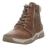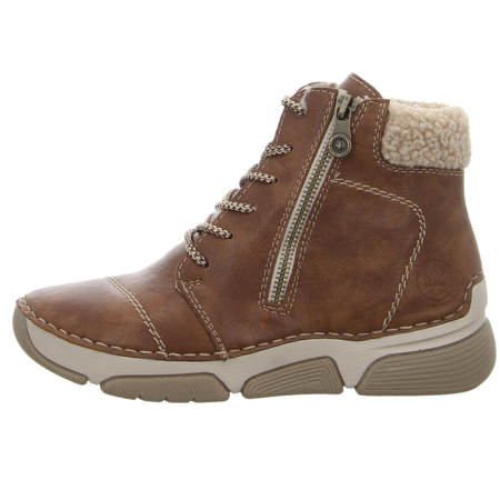 Leicht, schick und bequem ist diese braune Stiefelette von Rieker für Damen. Der sportliche Look und der gepolsterte Schaftrand passen zu jedem legeren Outfit. Dank gemütlichem Warmfutter sind Ihre Füße auch an kühlen Tagen bestens aufgehoben. Der leichte Keilabsatz sorgt für ein angenehmes Abrollen. Der Reißverschluss an der Schuhinnenseite garantiert einen einfachen Einstieg. Mit den Schnürsenkeln lässt sich die Schaftweite leicht variieren. Laufen Sie gemütlich durch kühle Tage in dieser sportiven Stiefelette von Rieker für Damen.