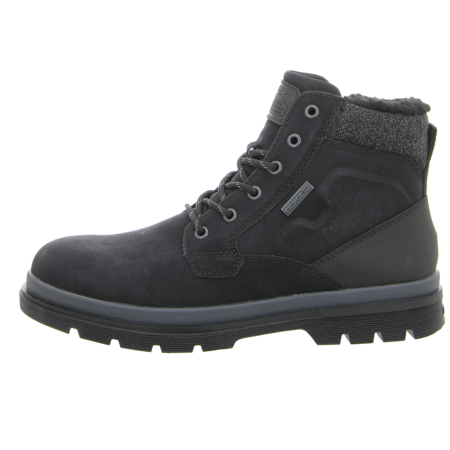 Kernig cool und kuschlig ist diese schwarze Stiefelette von Rieker für Herren. Der Leder-Textil-Mix gibt dem Schuh seinen einzigartigen Look. Dank Warmfutter aus Lammwolle trägt sich der Boot perfekt an kalten Tagen. Zum Komfort trägt auch der Blockabsatz bei. Die Schnürsenkel sichern ihn am Fuß und ermöglichen eine Variation der Schaftweite. Ob zum legeren Jeans Look in der Freizeit oder als Accessoire im beruflichen Alltag - diese Rieker Stiefelette legt immer einen tollen Auftritt hin!