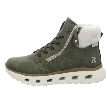 Cool und komfortabel ist diese coole grüne Outdoor Stiefelette von Rieker für Damen. Dank RiekerTex Membran bleiben Ihre Füße immer schön trocken. Durch die stabile Bauweise und die gut profilierte Sohle bleiben Ihre Füße auch auf schwierigen Untergründen bestens geschützt.