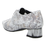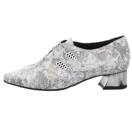 Dieser graue Schnürpumps von Simen für Damen verbindet Eleganz und Extravaganz. Die zeitlose Form des Pumps und die zarte Verarbeitung wurden gekonnt mit einem ausgefallenen Muster kombiniert. Die raffinierte Schuhzunge und die zarten Schnürsenkel unterstreichen nochmal den einmaligen Look. Der kleine Absatz und das weiche Innenleder sorgen für ein angenehmes und entspanntes Laufen. Dank der Schnürung werden Sie sich einer optimalen Passform erfreuen. Der elegante Schnürpumps von Simen ist ein Muss für Damen, die Klassisches und Extravagantes verbinden wollen!