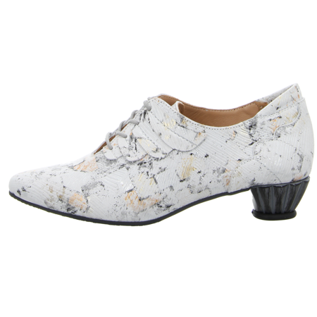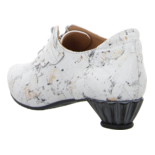 Dieser graue Schnürpumps von Simen für Damen verbindet Eleganz und Extravaganz. Die zeitlose Form des Pumps und die zarte Verarbeitung wurden gekonnt mit einem ausgefallenen Muster kombiniert. Die raffinierte Schuhzunge und die zarten Schnürsenkel unterstreichen nochmal den einmaligen Look. Der kleine Absatz und das weiche Innenleder sorgen für ein angenehmes und entspanntes Laufen. Dank der Schnürung werden Sie sich einer optimalen Passform erfreuen. Der elegante Schnürpumps von Simen ist ein Muss für Damen, die Klassisches und Extravagantes verbinden wollen!