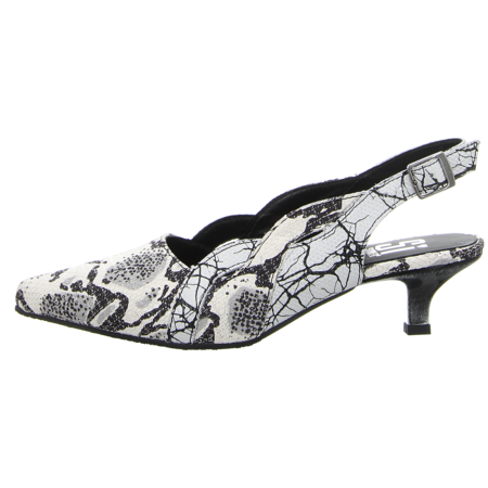 Der Slingpumps aus Leder in Weiß von Simen für Damen ist ein eleganter Begleiter zu Ihrem gehobenen Outfit. Faszinierende Details auf der Schuhoberseite sind echte Hingucker. Der elegante Pfennigabsatz dämpft Ihre Schritte und hebt Ihre Beinlinie. Das softe Fußbett sorgt für ein angenehmes Tragegefühl. Tragen Sie den schicken Pumps zum hochwertigen Outfit oder ziehen Sie auf einer entspannenden Shopping-Tour die Blicke auf sich.