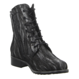 Die schwarz-silberne Schnürstiefelette von Simen ist ein schicker Schuh, der neben seiner unverwechselbaren Optik hohen Tragekomfort bietet. Ein angenehmes Tragegefühl gewährleistet das leichte Textilfutter im Schuhinneren. Die schwarze Schnürstiefelette von Simen ist ein absolutes Must Have für Damen, die auf ausgefallene Schuhe stehen!