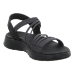 Die schwarze Damen Sandale Go Walk Flex von Skechers ist eine Wohltat für die Füße. Das geschäumte Fußbett sowie die äußerst flexible Laufsohle überzeugen schon beim ersten Tragen. Der Schuh kann am Spann mit Klettverschlüssen verstellt werden. An Komfort ist die schwarze Damen Sandale Go Walk Flex von Skechers kaum zu übertreffen und ist daher ein Must Have in aktiver Freizeit