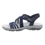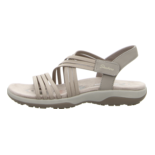 Die Damen Sandale Reggae Slim von Skechers in Grau ist eine Wohltat für die Füße. Das geschäumte Fußbett sowie die äußerst flexible Laufsohle überzeugen schon beim ersten Tragen. Dank Gummizug ist eine gute Passform immer möglich. An Komfort ist die Damen Sandale von Skechers kaum zu übertreffen und ist daher ein Must Have in aktiver Freizeit.