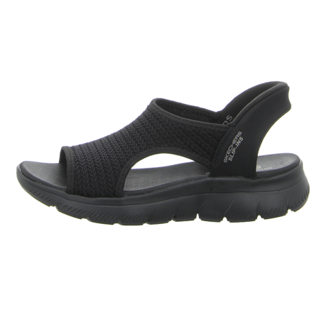 Die schwarze Damen Sandale Summits Sandal von Skechers ist eine Wohltat für die Füße. Das geschäumte Fußbett sowie die äußerst flexible Laufsohle überzeugen schon beim ersten Tragen. Dank Gummizug ist eine gute Passform immer möglich. An Komfort ist die schwarze Damen Sandale Summits Sandal von Skechers kaum zu übertreffen und ist daher ein Must Have in aktiver Freizeit.