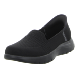 Den sportlichen Damen Slipper On-The-Go Flex in Schwarz von Skechers zeichnet seine spezielle Laufsohle aus, die die natürliche Gehbewegungen unterstützt. Das besonders elastische Mesh Material trägt zusammen mit der flexiblen Sohle zum hohen Tragekomfort bei. Ihre Schritte werden abgefedert, egal auf welchem Untergrund Sie unterwegs sind. Der Skechers Slipper On-The-Go Flex vereint Komfort und Design zu einem einzigartigen Laufgefühl.