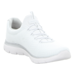 Der weiße sportliche Slipper Summits von Skechers für Damen besticht durch sein verspieltes Design und hohen Tragekomfort. Die dekorative Schnürung auf dem Blatt peppt den klassischen Sportslipper deutlich auf. Eine absolute Wonne für die Füße ist die weiche und geschäumte Laufsohle mit Keilabsatz, der die natürliche Abrollbewegung unterstützt und federleichtes, ermüdungsfreies Laufen verspricht. Die Laufsohle wurde zudem noch durch einen silbernen Rand verziert. Verspielt und gemütlich ist der sportliche Slipper Summits von Skechers und daher ein Top Laufschuh für aktive Damen.