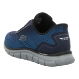 Der blaue sportliche Slipper Track von Skechers aus Textil Obermaterial ist ein universeller Sport- und Freizeitschuh für Herren. Das mit schönen Ziernähten verzierte Textil Material sorgt für optimale Atmungsaktivität Ihrer Füße. Die Air Cooled Memory Foam Innensohle passt sich nach kurzer Zeit Ihrer Fußform an. Die profilierte, geschäumte Laufsohle ist ein echter Komfortgarant. Mit dem sportlichen Slipper Sports Track von Skechers tragen sportive Herren einen bequemen und praktischen Schuh für Sport und Freizeit.