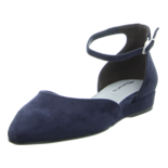 Mit diesem blauen Ballerina von Tamaris tragen Damen einen zarten Sommerschuh. Seine elegante Form und die klassische Farbe lassen sich zu vielen Outfits kombinieren. Der dezente Absatz und die softe Sohle sorgen für ein angenehmes Tragegefühl. Dank dem zarten Riemchen können Sie den Schuh ideal an Ihre Passform anpassen. Perfekt für den Sommer oder als eleganter Schuh für Abendveranstaltungen ist diese Ballerina ein Must Have für Ihren Schuhschrank.