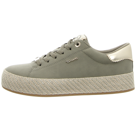 Der grüne sportliche Schnürschuh von Tamaris aus Lederimitat ein gemütlicher Schuh. Die verspielte Sohlenumrandung wird alle Blicke auf Sie ziehen und versprüht den Charme von Strand und Sonne. Mit dem sportlichen Schnürschuh von Tamaris laufen Sie nicht nur im Sommer sportlich und bequem durch den Alltag.