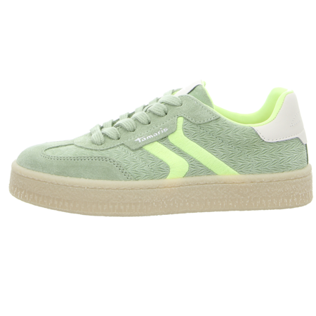 Erfrischend im Design und ein echter Komfortschuh ist der Sneaker von Tamaris aus grünem Leder. Das weiche Fußbett und das Profil der Laufsohle garantieren, dass Sie nicht nur stylisch, sondern auch besonders fußfreundlich unterwegs sind. Zum legeren Jeans Look ist dieser Sneaker Low von Tamaris einfach ein Must Have!