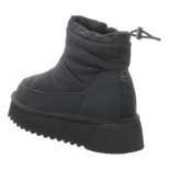 Schwarze gefütterte Damen Schnürstiefelette von Tamaris. Winterboot mit extravagantem Design das jeden Schritt zum stylischen Erlebnis werden lässt. Besonderes Highlight sind der ausgefallen designte Schaft und das Zierband an der Fersenkappe.