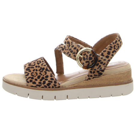 Diese braune Sandalette von Tamaris ist aus hochwertigem Rauleder gefertigt. Er kann zu jedem Sommer Outfit getragen werden und wird Sie auch mit seinem Tragekomfort überzeugen. Den hohen Komfort hat die Sandalette ihrem ergonomischen Fußbett aus Leder zu verdanken. Eine perfekte Anpassung an den Spann garantiert Ihnen das mittlere verstellbare Riemchen. Die Keilsohle ist bequem und ein Hingucker. Mit der braunen Tamaris Sandalette laufen Sie trendig durch den Sommer und verwöhnen dabei Ihre Füße.
